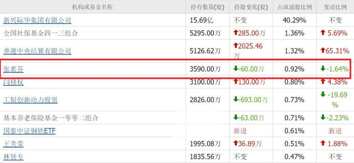 张素芬三季度,微减1.64%,仍抓有3590万股,位列第四大指令鼓动。